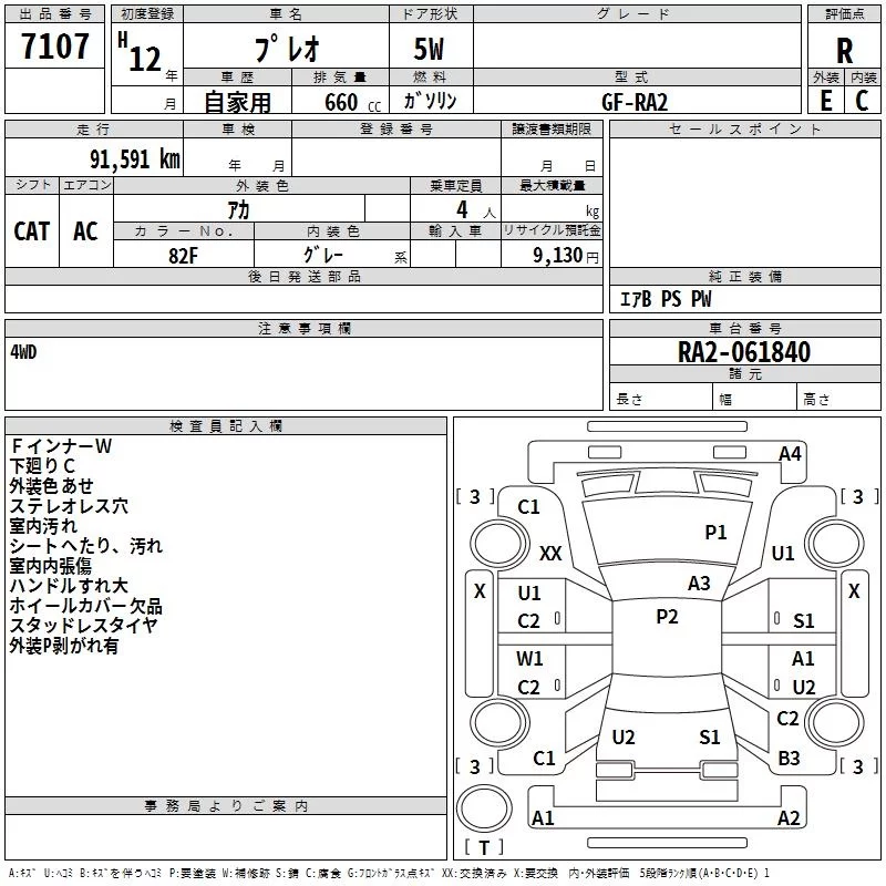 Subaru PLEO с аукциона Японии TAA Hokkaido лот № 7107