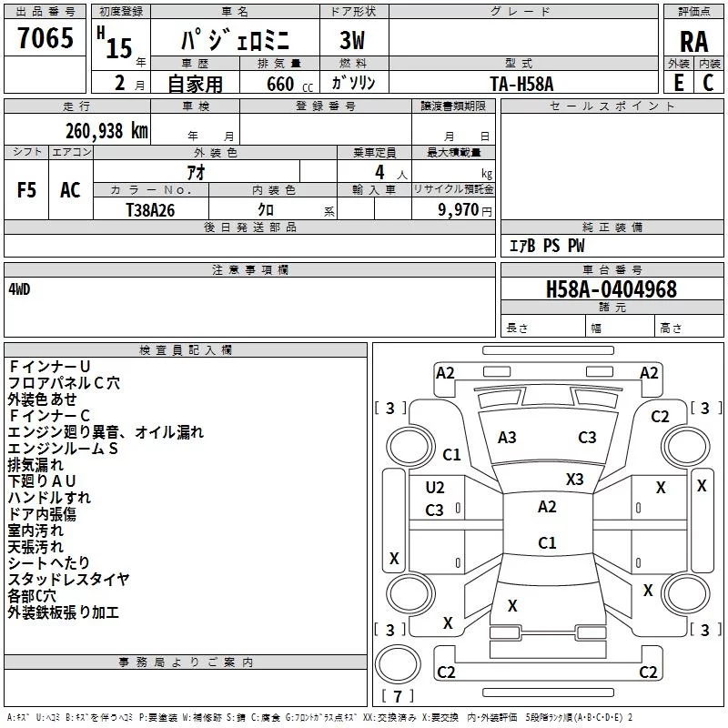 Mitsubishi PAJERO MINI с аукциона Японии TAA Hokkaido лот № 7065