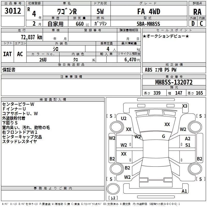 Suzuki WAGON R с аукциона Японии TAA Hokkaido лот № 3012