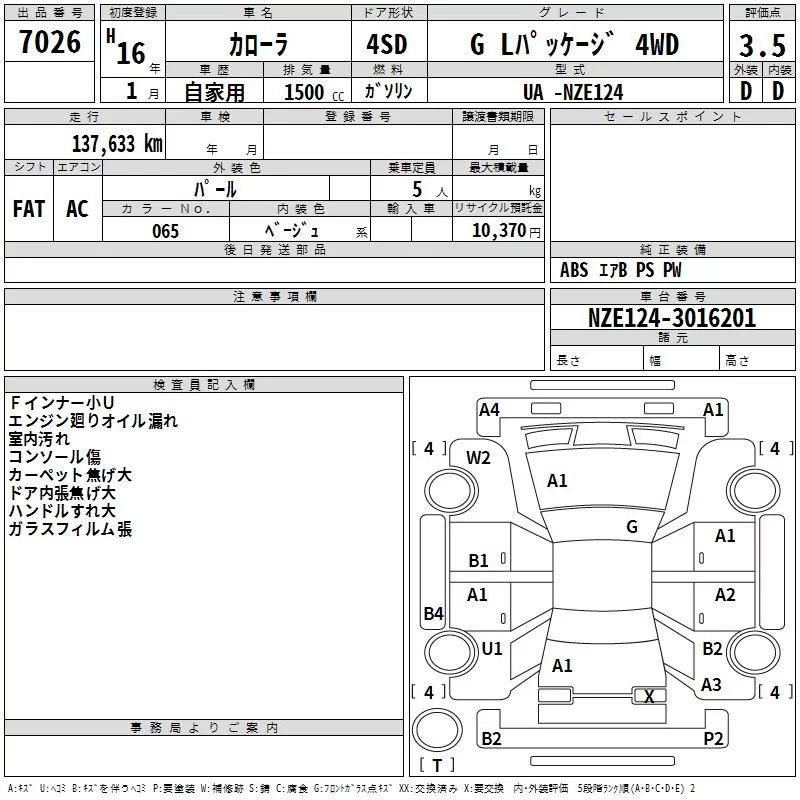 Toyota COROLLA с аукциона Японии TAA Tohoku лот № 7026