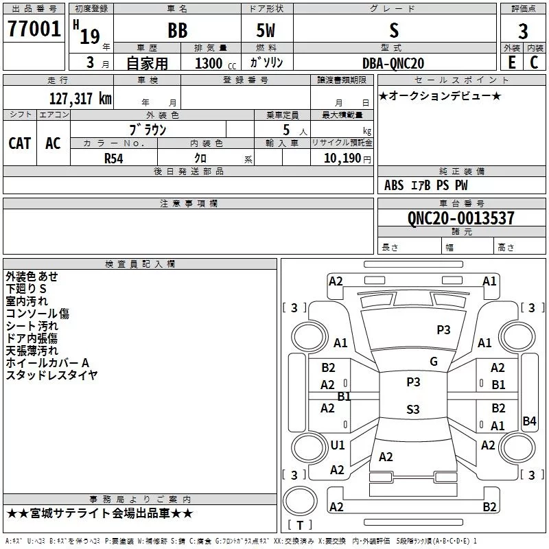 Toyota BB с аукциона Японии TAA Tohoku лот № 77001