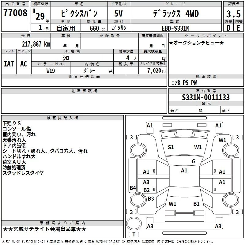 Toyota PIXIS VAN с аукциона Японии TAA Tohoku лот № 77008