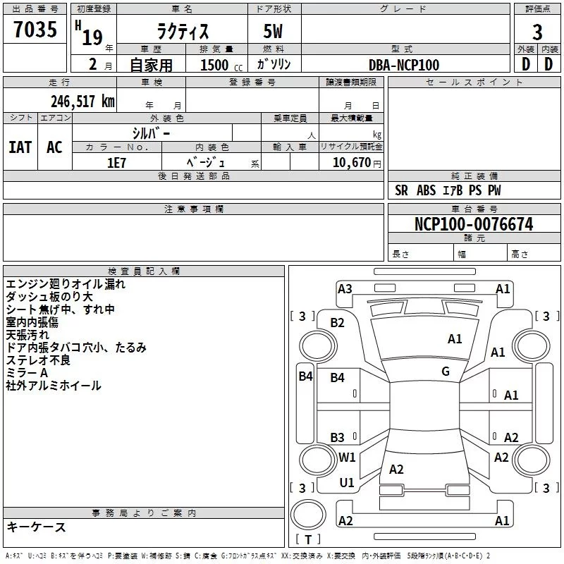Toyota RACTIS с аукциона Японии TAA Tohoku лот № 7035