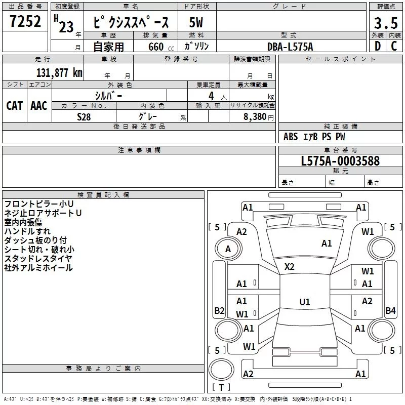 Toyota PIXIS SPACE с аукциона Японии TAA Tohoku лот № 7252