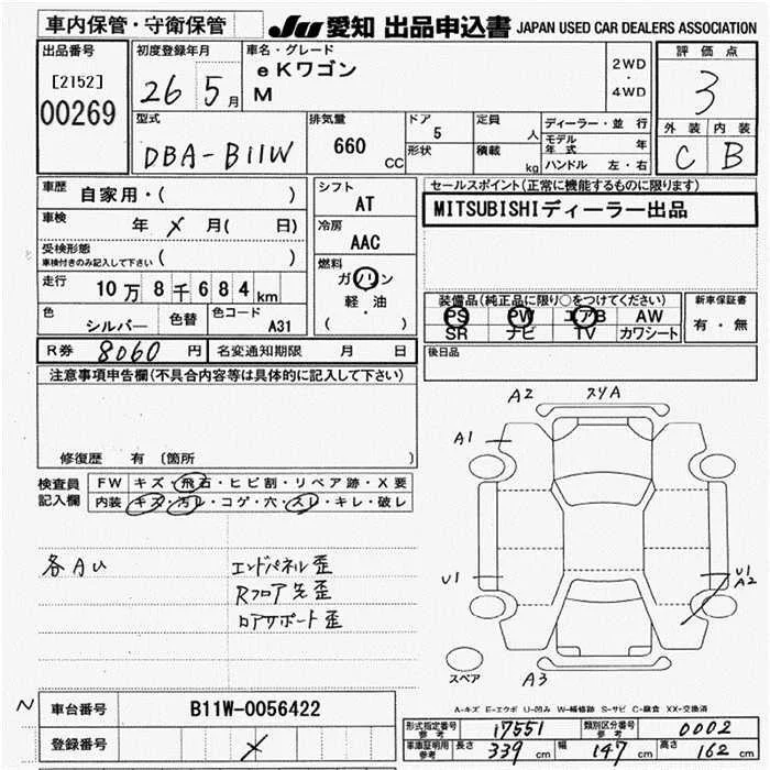 Mitsubishi EK WAGON с аукциона Японии JU Aichi лот № 269
