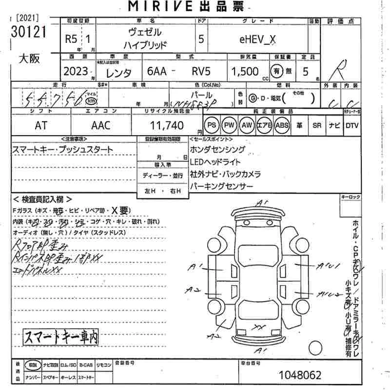 Honda VEZEL с аукциона Японии MIRIVE Osaka лот № 30121