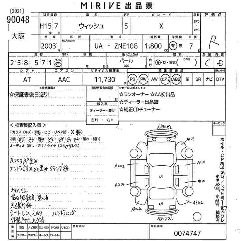 Toyota WISH с аукциона Японии MIRIVE Osaka лот № 90048