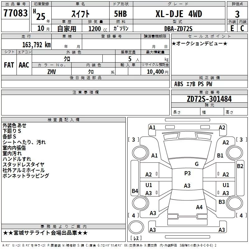 Suzuki SWIFT с аукциона Японии TAA Tohoku лот № 77083