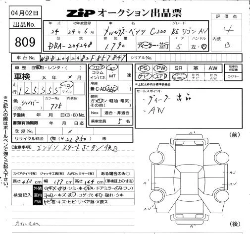 Mercedes-Benz C CLASS WAGON с аукциона Японии ZIP Osaka лот № 809