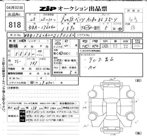 Mercedes-Benz A CLASS с аукциона Японии ZIP Osaka лот № 818