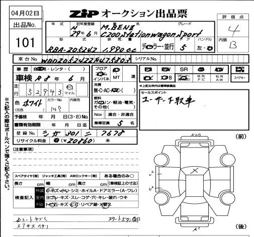 Mercedes-Benz C CLASS WAGON с аукциона Японии ZIP Osaka лот № 101