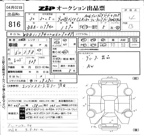 Mercedes-Benz CLA CLASS с аукциона Японии ZIP Osaka лот № 816