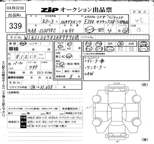 Mercedes-Benz E CLASS с аукциона Японии ZIP Osaka лот № 339