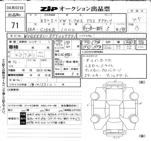 Volkswagen T-CROSS с аукциона Японии ZIP Osaka лот № 71