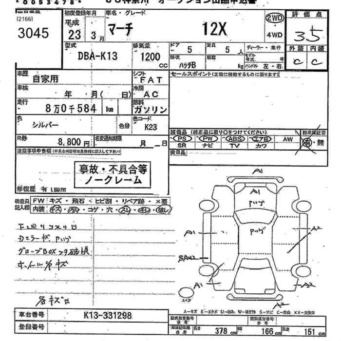 Nissan MARCH с аукциона Японии JU Kanagawa лот № 3045