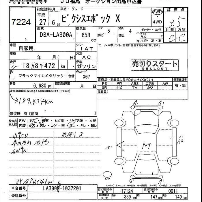 Toyota PIXIS EPOCH с аукциона Японии JU Fukushima лот № 7224