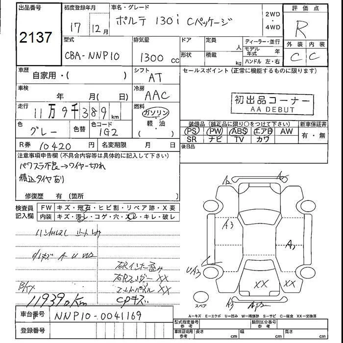 Toyota PORTE с аукциона Японии JU Fukushima лот № 2137