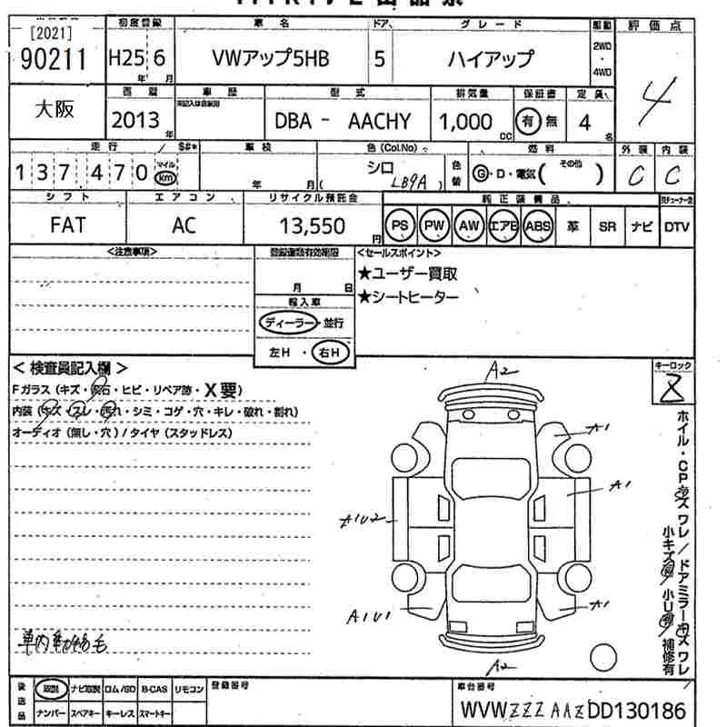 Volkswagen UP с аукциона Японии MIRIVE Osaka лот № 90211