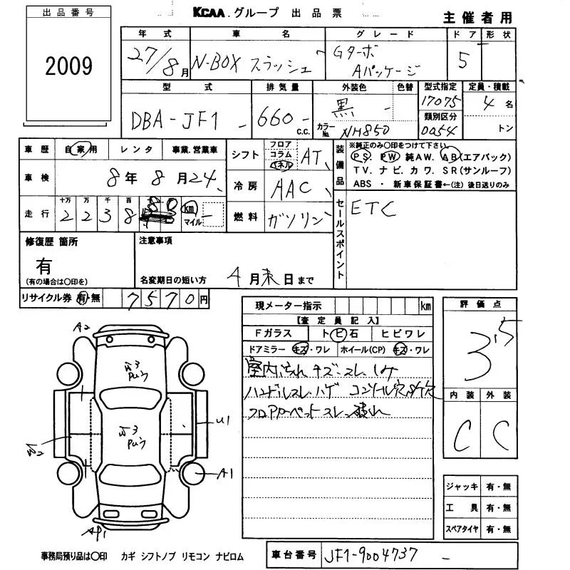 Honda N BOX SLASH с аукциона Японии KCAA Fukuoka лот № 2009