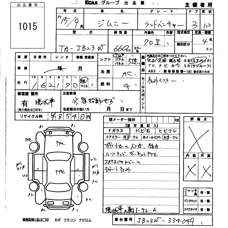 Suzuki JIMNY с аукциона Японии KCAA Fukuoka лот № 1015