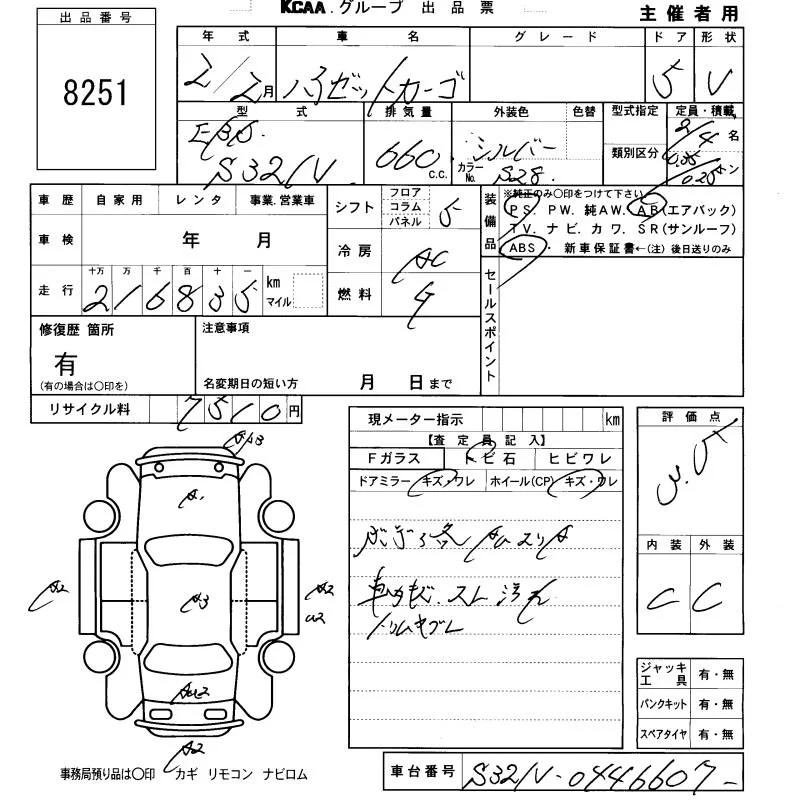 Daihatsu HIJET VAN с аукциона Японии KCAA Fukuoka лот № 8251