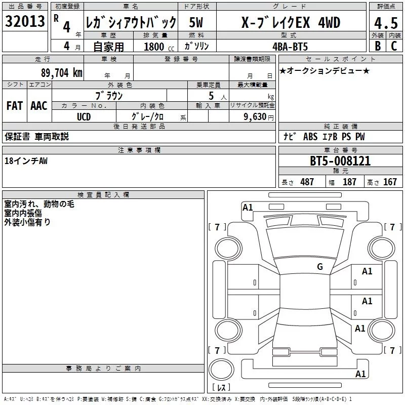 Subaru LEGACY OUTBACK с аукциона Японии TAA Kanto лот № 32013