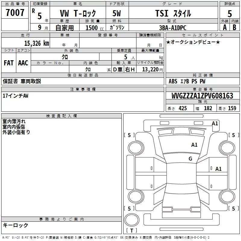 Volkswagen T-ROC с аукциона Японии TAA Kanto лот № 7007