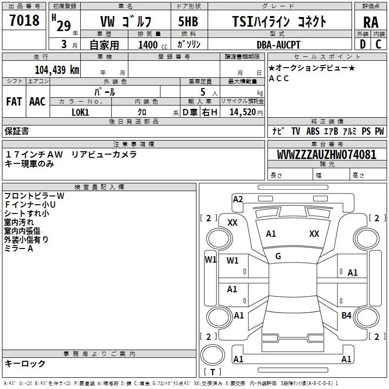Volkswagen Golf с аукциона Японии TAA Kanto лот № 7018