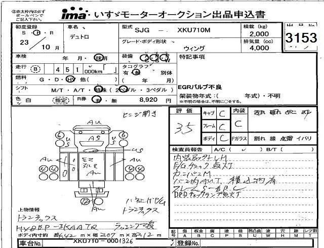 Hino DUTRO с аукциона Японии Isuzu Kyushu лот № 3153