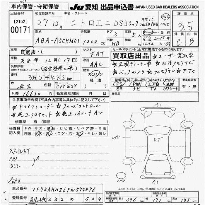 Citroen DS3 с аукциона Японии JU Aichi лот № 171