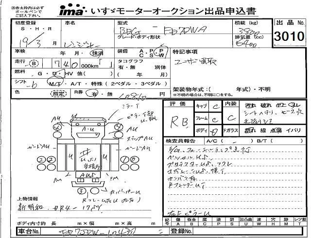 Hino RANGER с аукциона Японии Isuzu Kobe лот № 3010