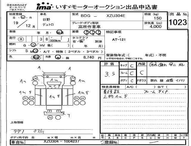 Hino DUTRO с аукциона Японии Isuzu Kobe лот № 1023