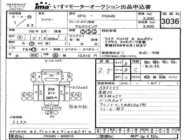 Mitsubishi FUSO FIGHTER с аукциона Японии Isuzu Kobe лот № 3036