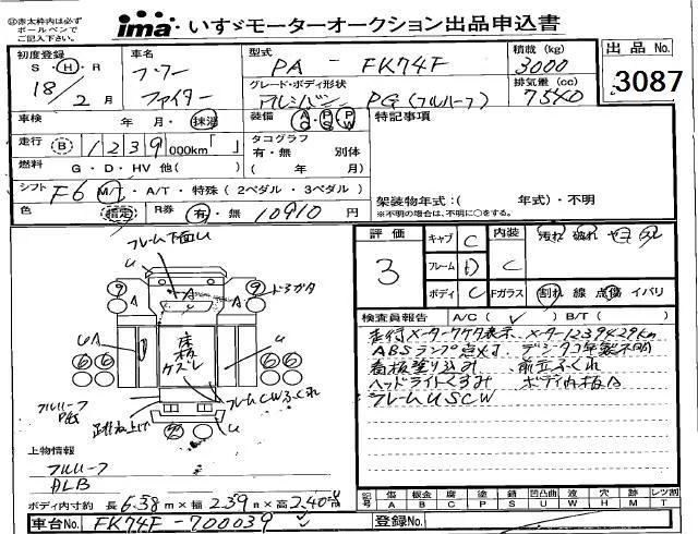 Mitsubishi FUSO FIGHTER с аукциона Японии Isuzu Kobe лот № 3087