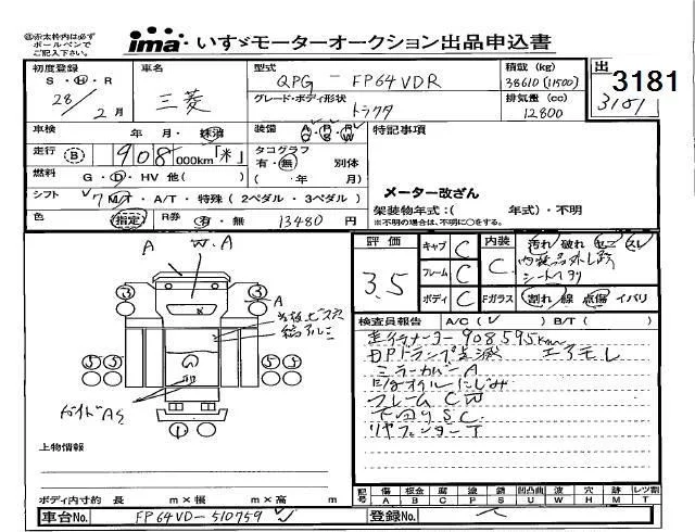 Mitsubishi FUSO TRUCK с аукциона Японии Isuzu Kobe лот № 3181