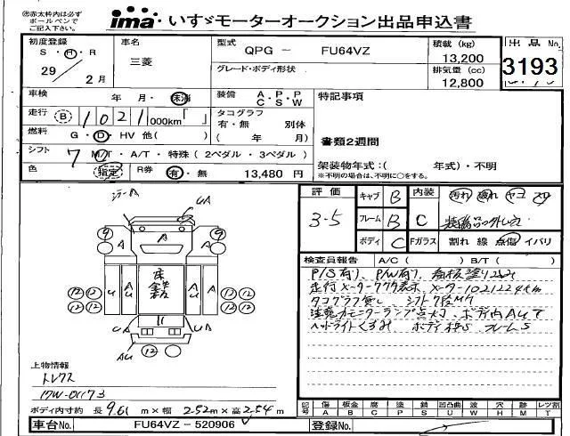 Mitsubishi FUSO TRUCK с аукциона Японии Isuzu Kobe лот № 3193