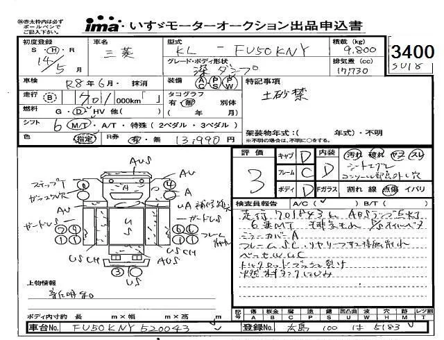 Mitsubishi FUSO TRUCK с аукциона Японии Isuzu Kobe лот № 3400