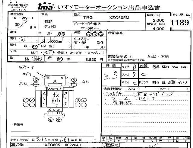 Hino DUTRO с аукциона Японии Isuzu Kobe лот № 1189