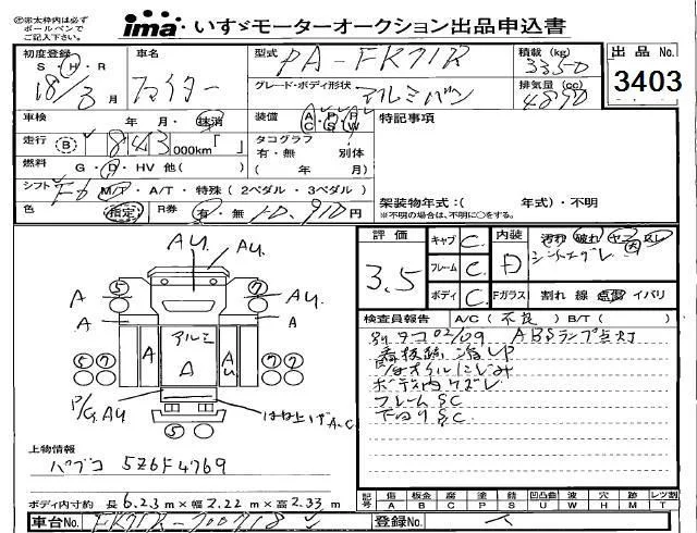 Mitsubishi FUSO FIGHTER с аукциона Японии Isuzu Kobe лот № 3403