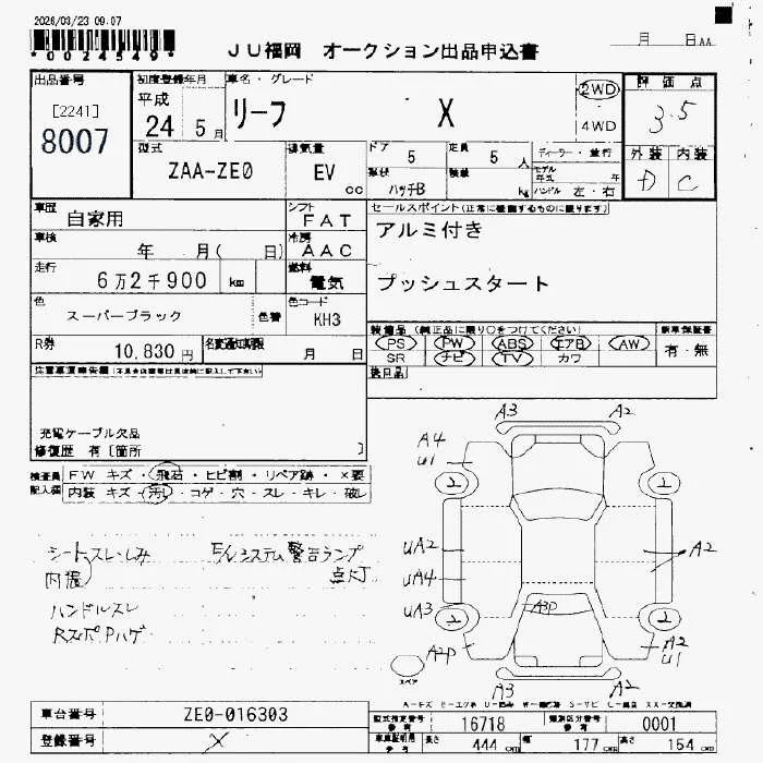 Nissan LEAF с аукциона Японии JU Fukuoka лот № 8007