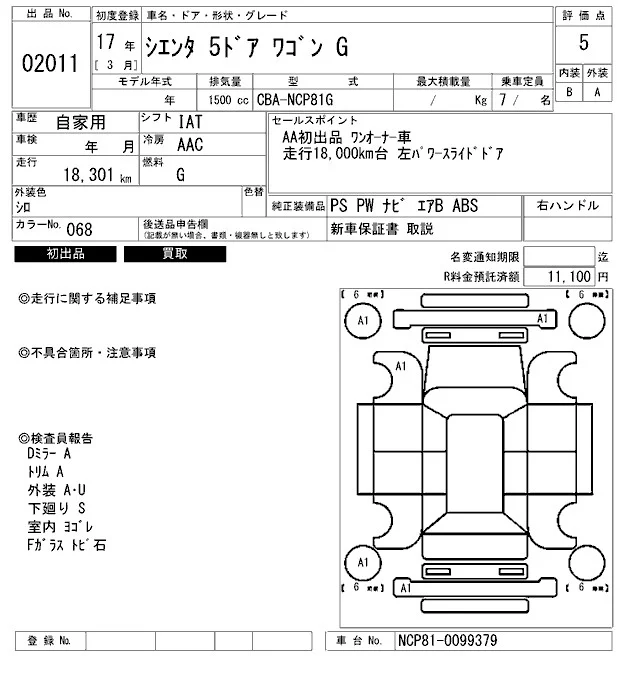 Toyota SIENTA с аукциона Японии ARAI Bayside лот № 2011