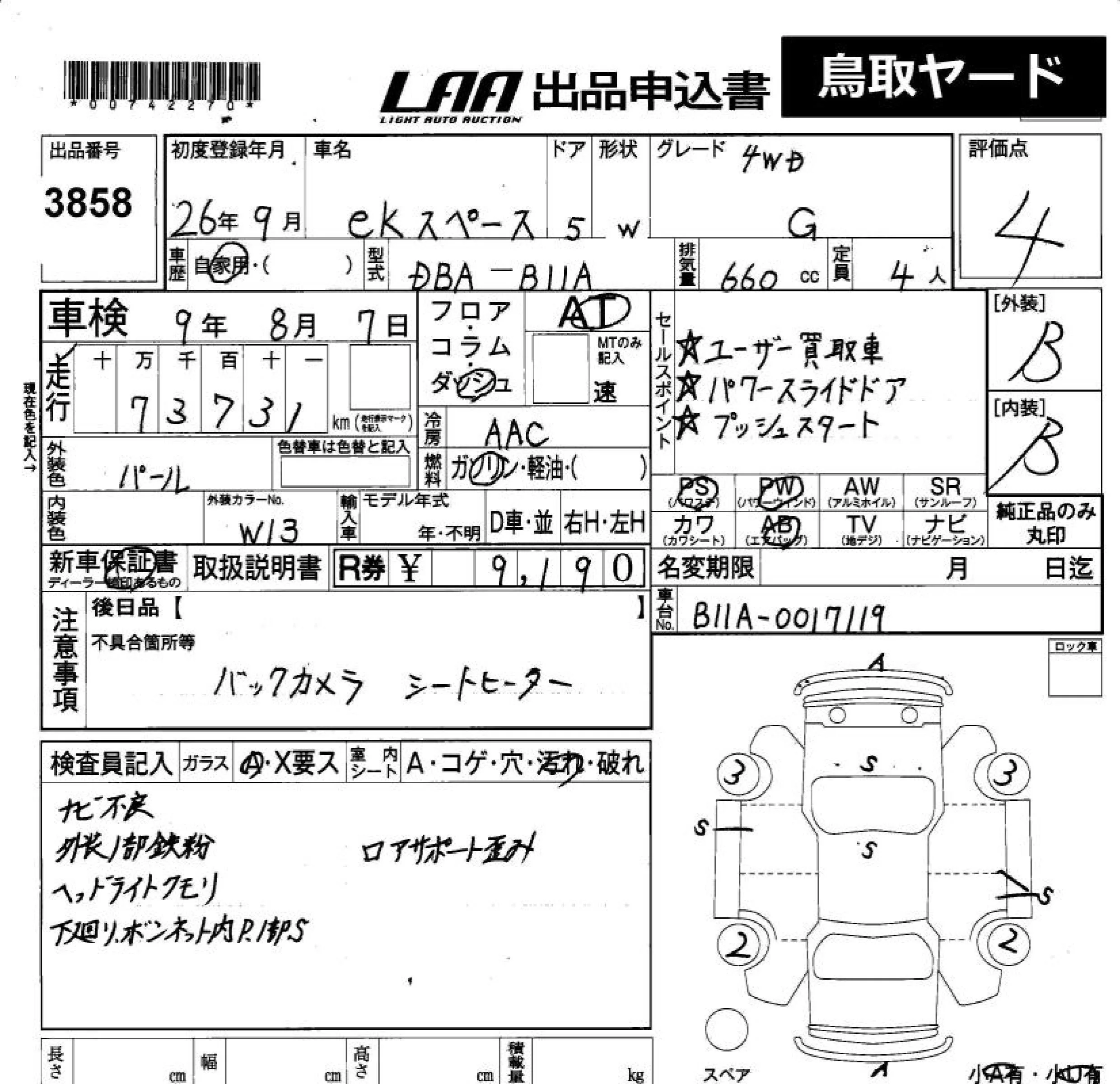 Mitsubishi EK SPACE с аукциона Японии LAA Okayama лот № 3858