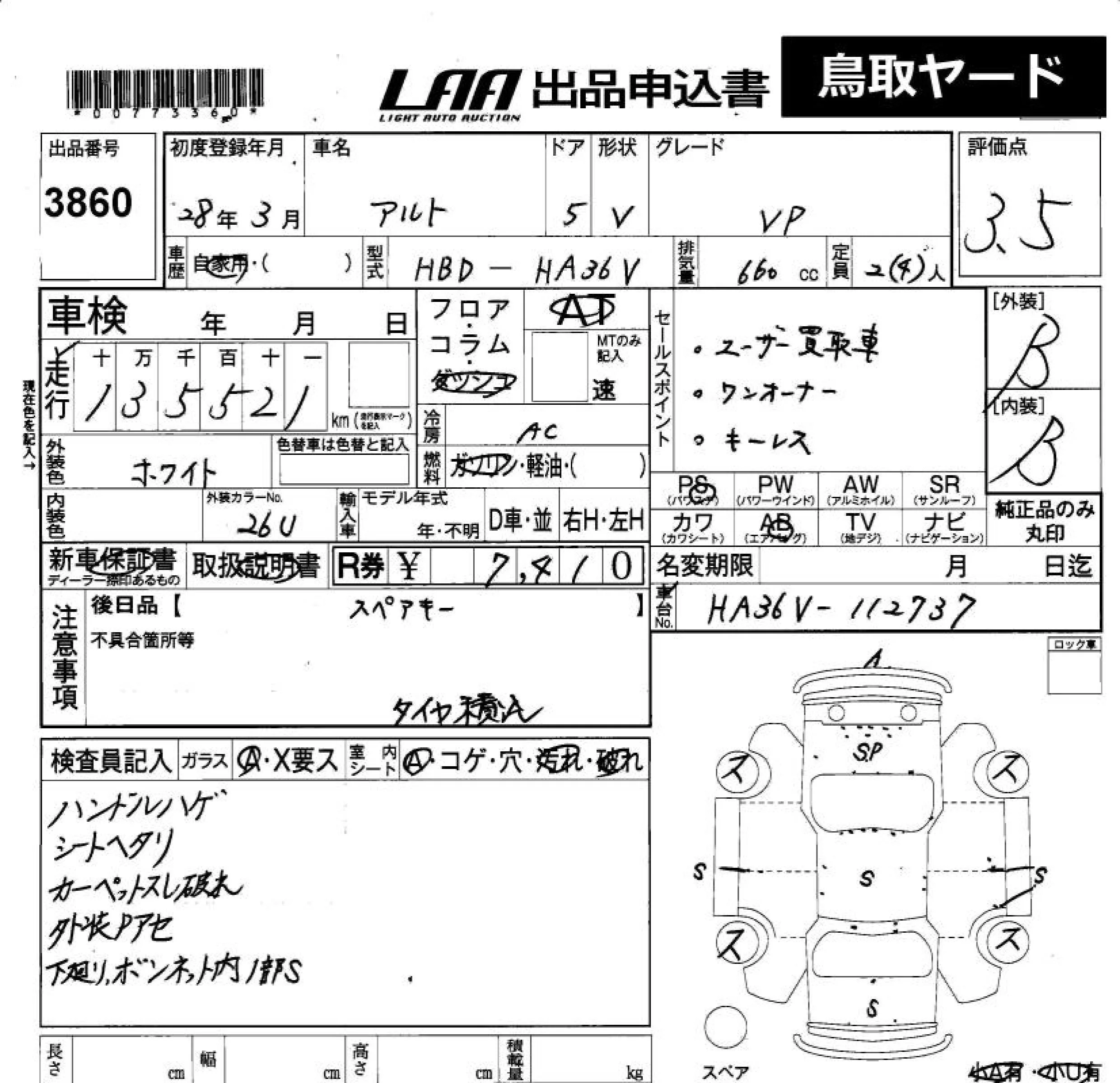 Suzuki ALTO VAN с аукциона Японии LAA Okayama лот № 3860