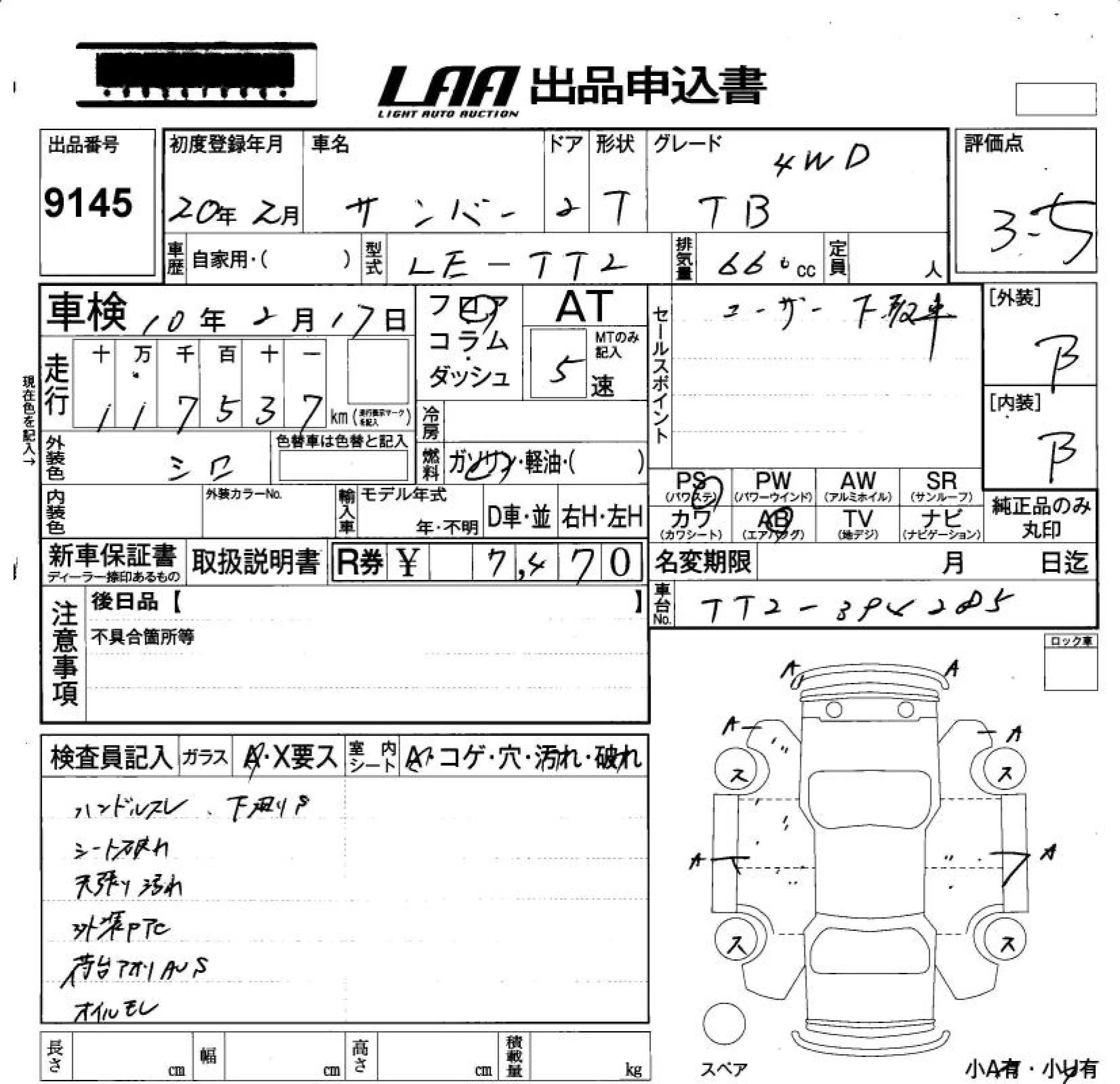 Subaru SAMBAR с аукциона Японии LAA Okayama лот № 9145