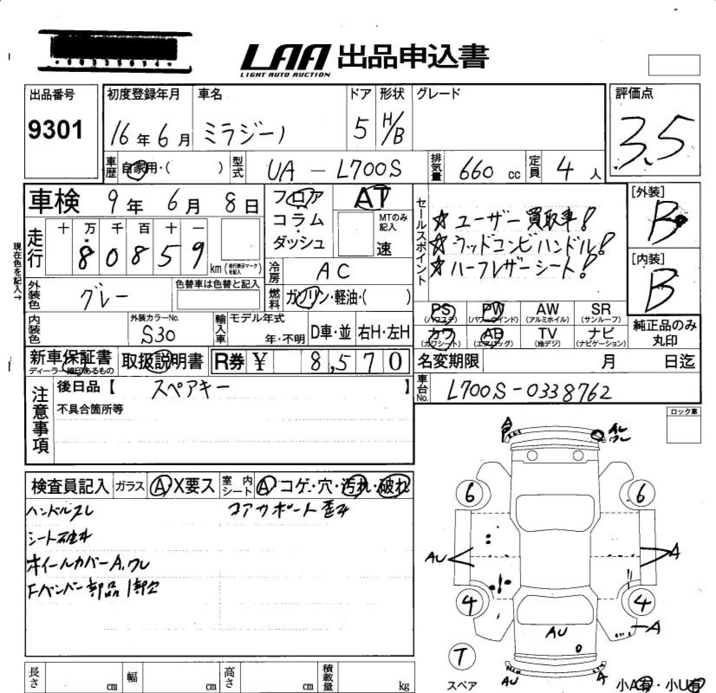Daihatsu MIRA с аукциона Японии LAA Okayama лот № 9301