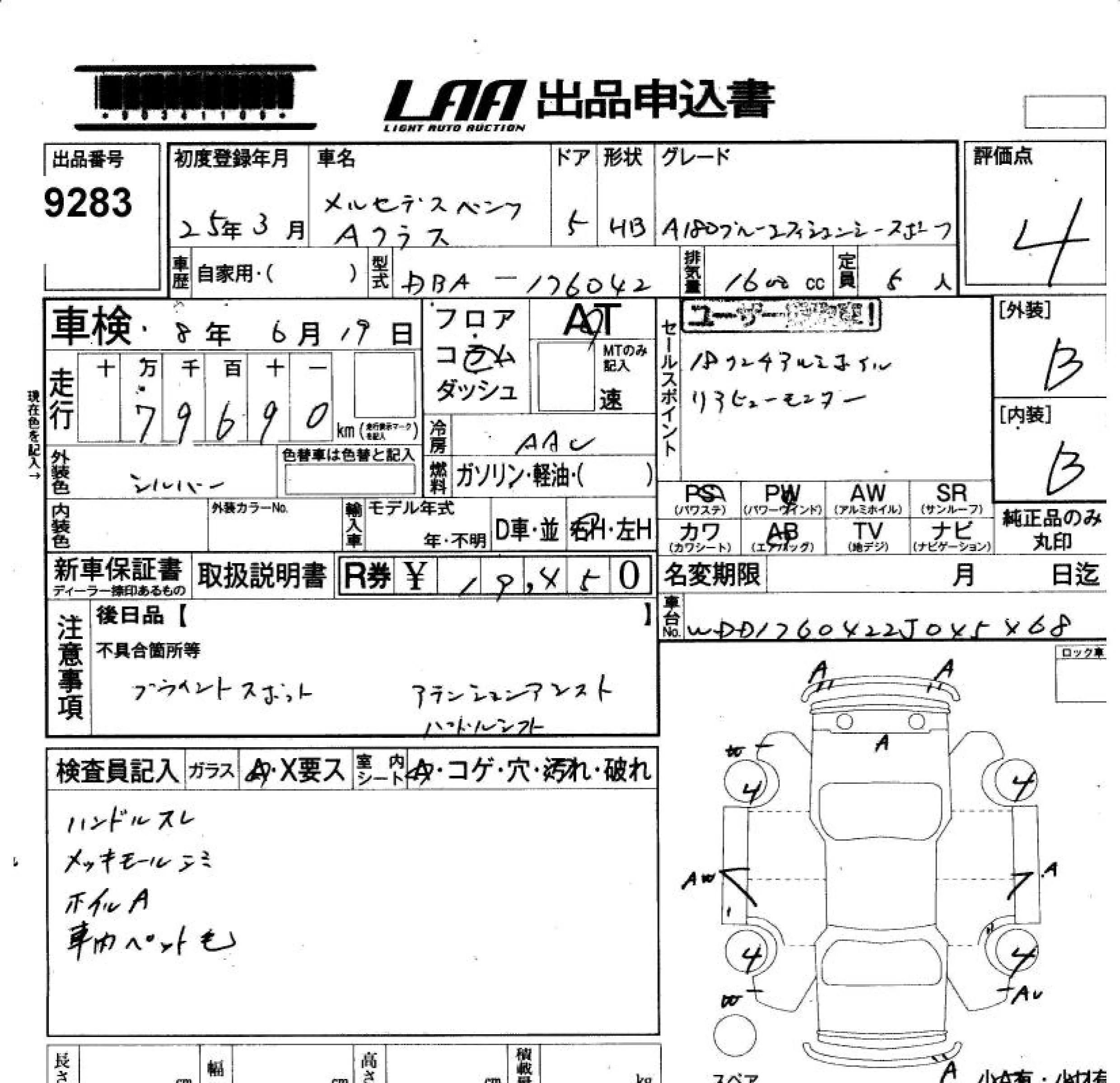 Mercedes-Benz A CLASS с аукциона Японии LAA Okayama лот № 9283