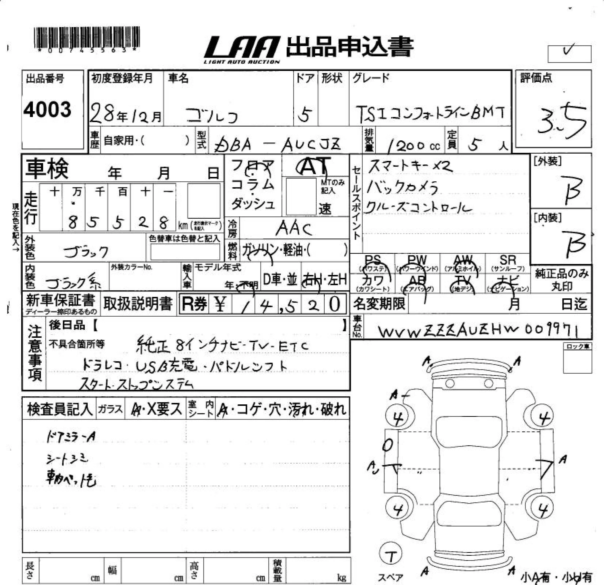 Volkswagen Golf с аукциона Японии LAA Okayama лот № 4003