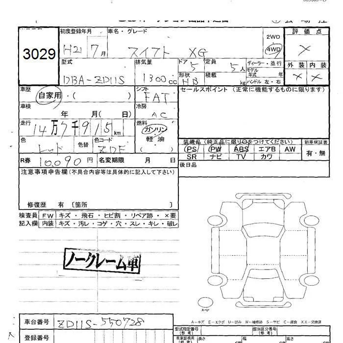 Suzuki SWIFT с аукциона Японии JU Hokkaido лот № 3029