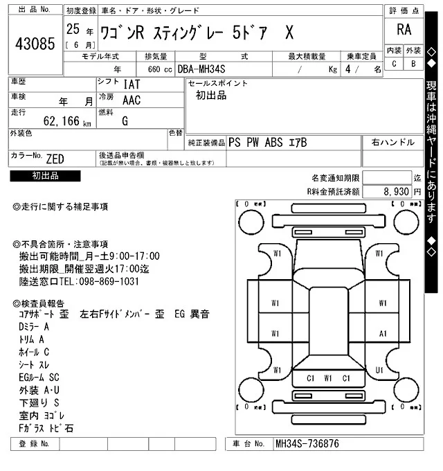 Suzuki WAGON R с аукциона Японии ARAI Bayside лот № 43085
