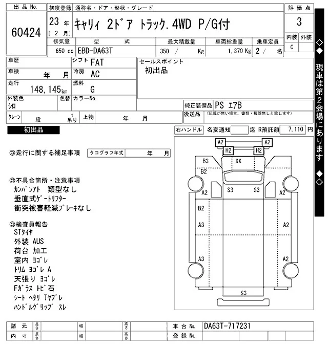 Suzuki CARRY TRUCK с аукциона Японии ARAI Bayside лот № 60424